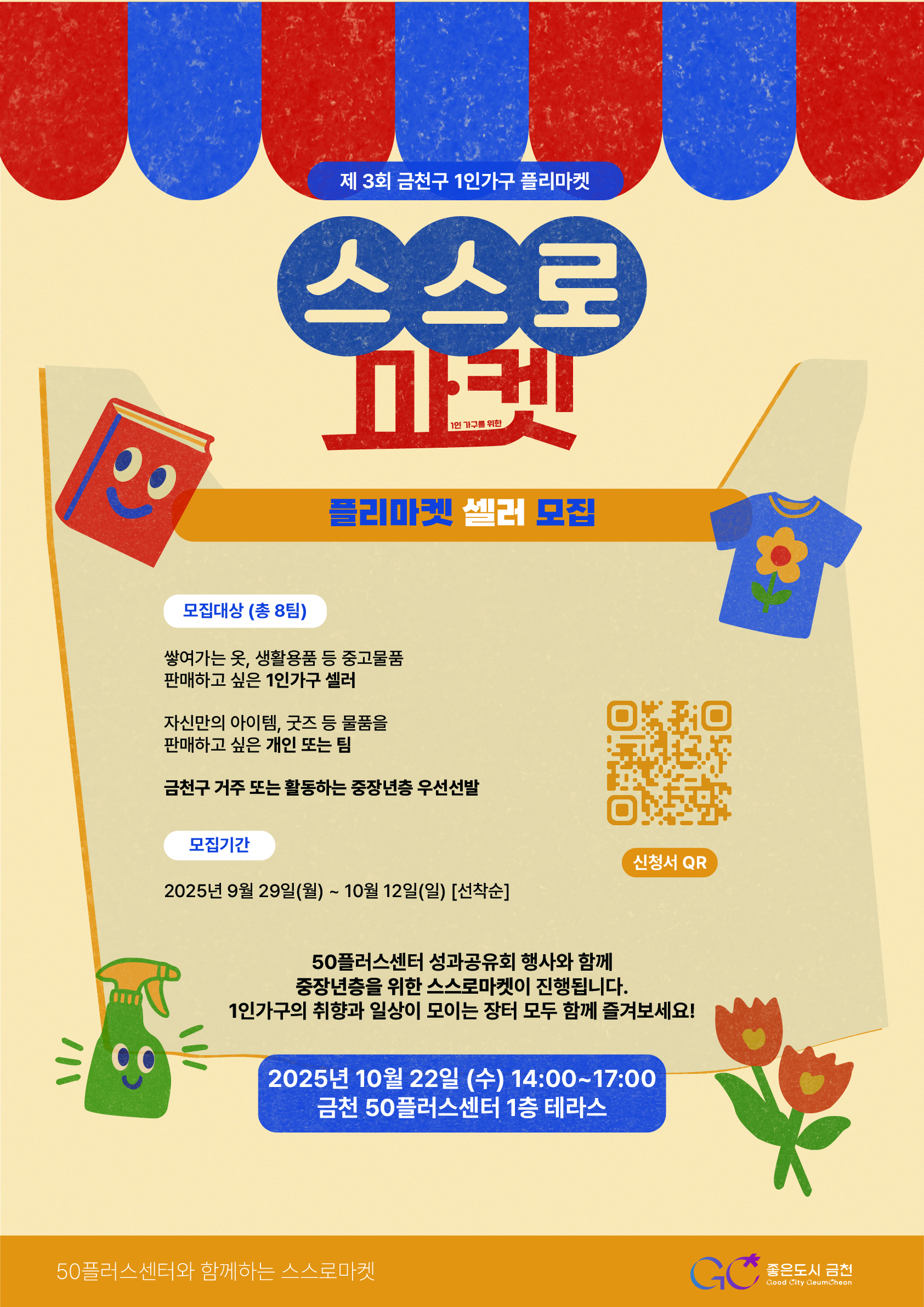 중장년 1인가구와 함께하는 제3회 스스로마켓에 참여할 셀러들을 모집합니다. 많은 참여 부탁드립니다 ^^ |