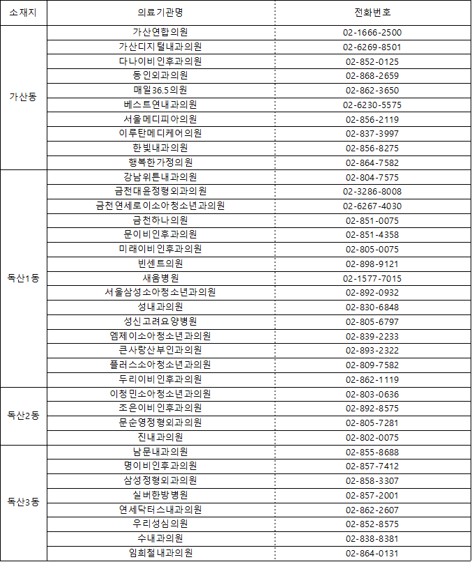 문의사항 : 금천구보건소 예방접종실(02-2627-2401/2402/2685/2645) |