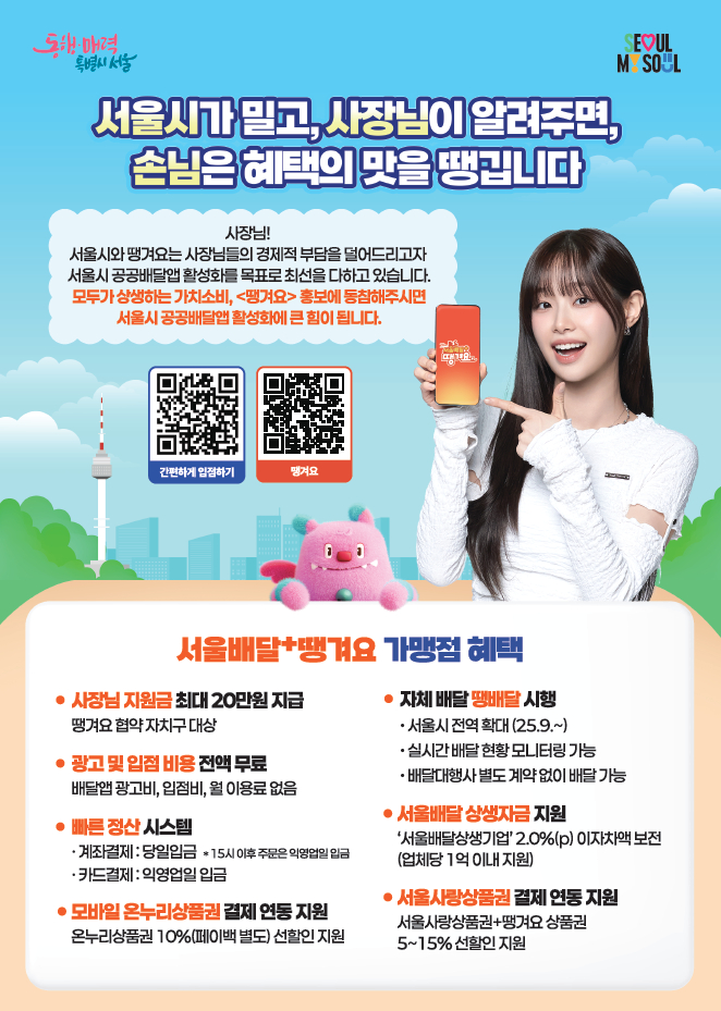 | 제목 | 서울배달+땡겨요 가맹점 혜택 |
