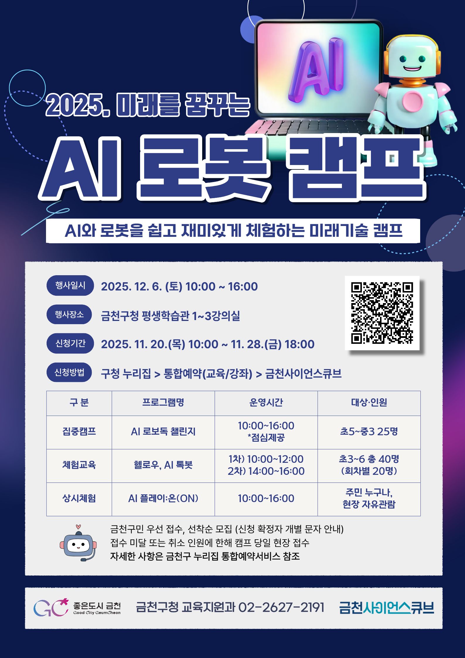 · 금천구민 우선 접수, 선착순 모집 (신청 확정자 개별 문자 안내)