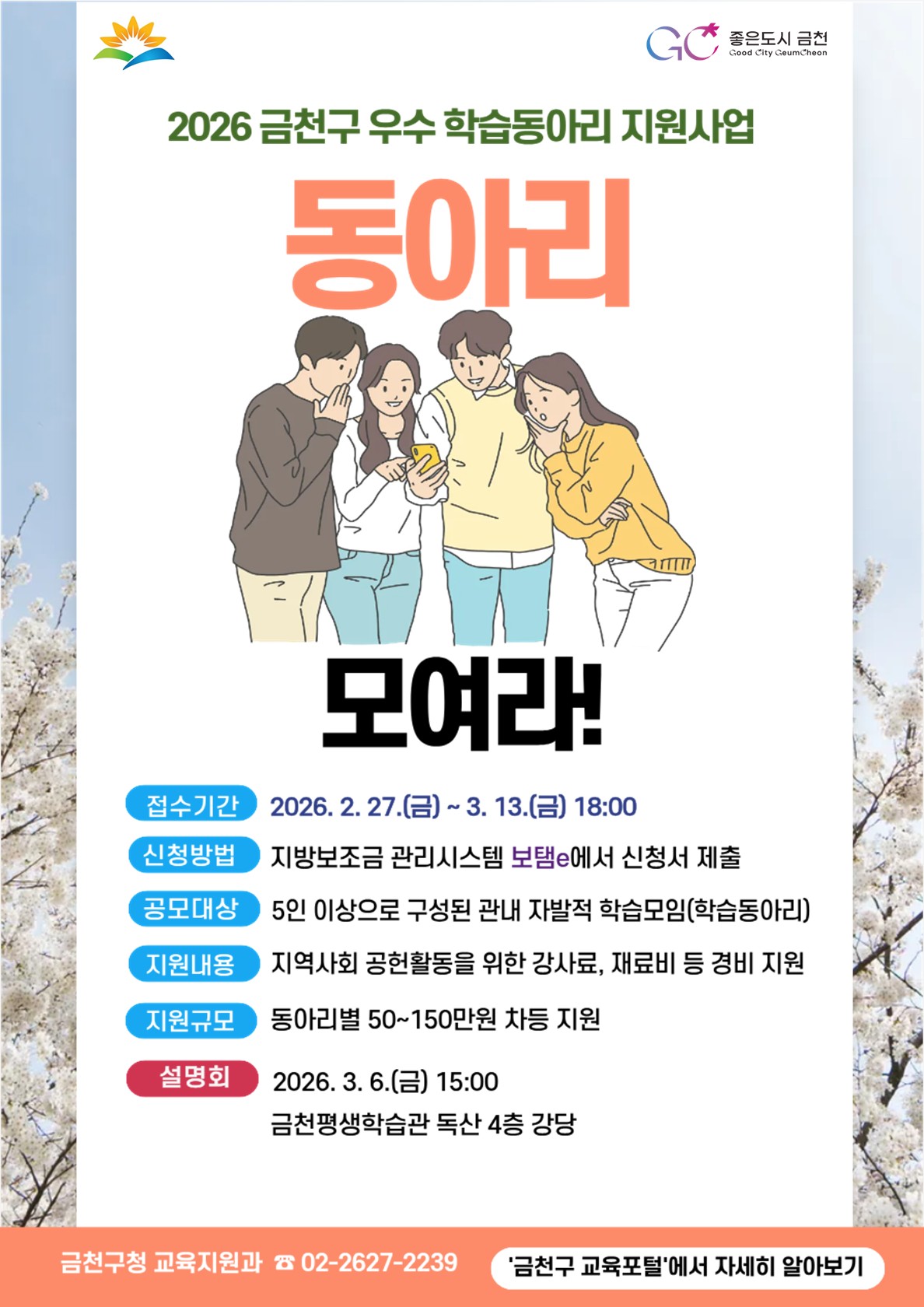 ★ 2026년 금천구 우수 학습동아리 지원사업과 관련된 세부 내용은 위의 첨부파일을 참고해 주세요!